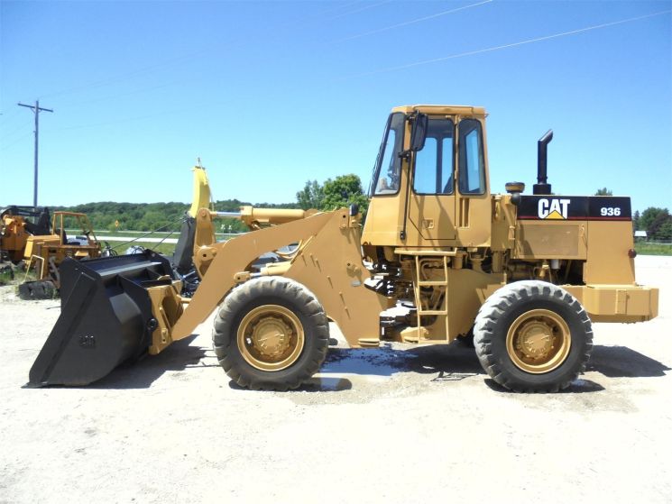 Specifications: 1985 Caterpillar 936 Wheel Loader Machine runs like new. Equipped with Cat 3304BT engine, heated cab, foam filled 17.5x25 tires, ACS quick coupler, 3 1/2 yard bucket with bolt on cutting edge. Hour meter reads 843. Actual machine weight -29700