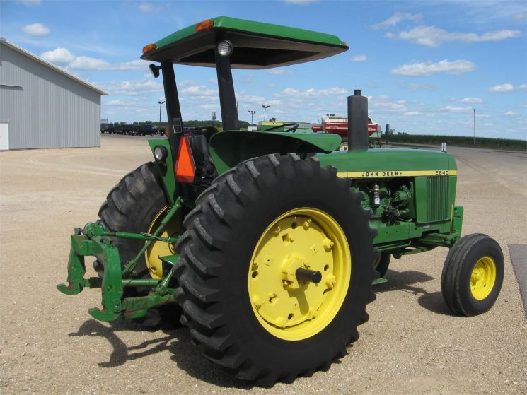 Specifications: - 1997 John Deere 2840 Tractor - Drive: 2 WD - HP: 80 - Hours: 3267 - 2 Post R.O.P.s w/ Top - 540/1000 Pto - 3 Point & Quick Hitch - 2 Rear Hyd. Remotes - 4 Front Weight - 18.4R x 34'' Firestone Rear Tires - 10.00 x16'' Fronts - Micro-Calc-An-Acre Monitor w/ Trak-Star Radar Unit. VERY CLEAN TRACTOR!