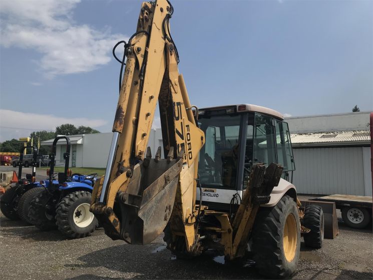 Specifications: NEW HOLLAND 575E TRACTOR LOADER BACKHOE ENCLOSED CAB WITH HEAT 4WD POWER SHUTTLE HED 24" BACKHOE BUCKET 1.3YD LOADER BUCKET 2 LEVER BACKHOE CONTROLS 14X17.5 FRONT TIRES 16.9X28 REAR TIRES DUAL BATTERIES AUX CIRCUIT FOR BACKHOE