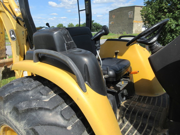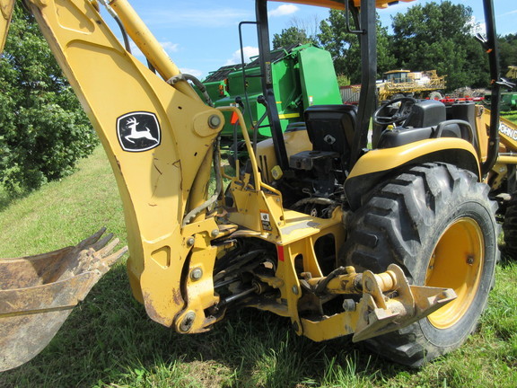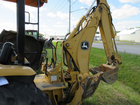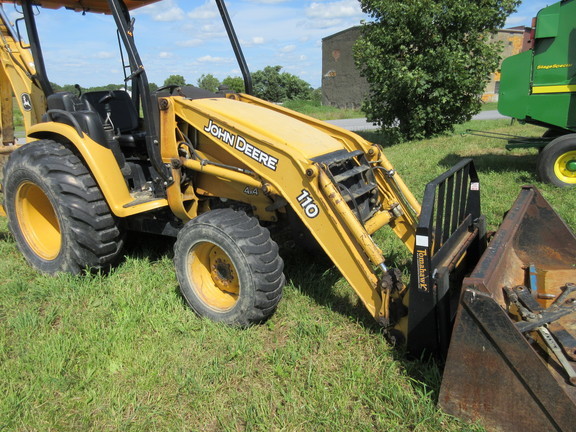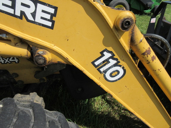 Specifications: 2002 John Deere 110TLB Backhoe Operators Station: ROPS3 Spool Powertrain: 4X4 Buckets: 18" Bucket Tires: 10X16.5/17.5X24 R4 Attachments: Coupler - John Deere 110 Tractor loader backhoe With Skid steer style quick attach 72" loader bucket with replaceable cutting edge, 18" Back Hoe bucket