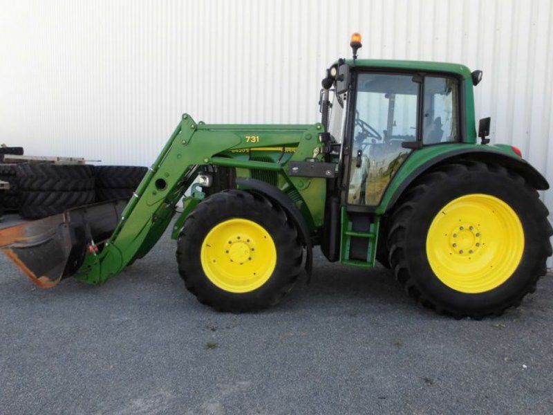 Specifications: 2003 John Deere 6420 Condition Used Year of manufacture 2003 Operating hours 3,885 h Maximum speed 40 kph Gearbox Powershift gearbox PTO speed 540/750 Cylinders 4 Pneumatic system ELC Front-end loader Front pto