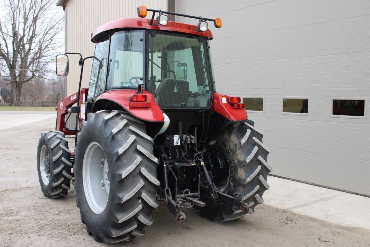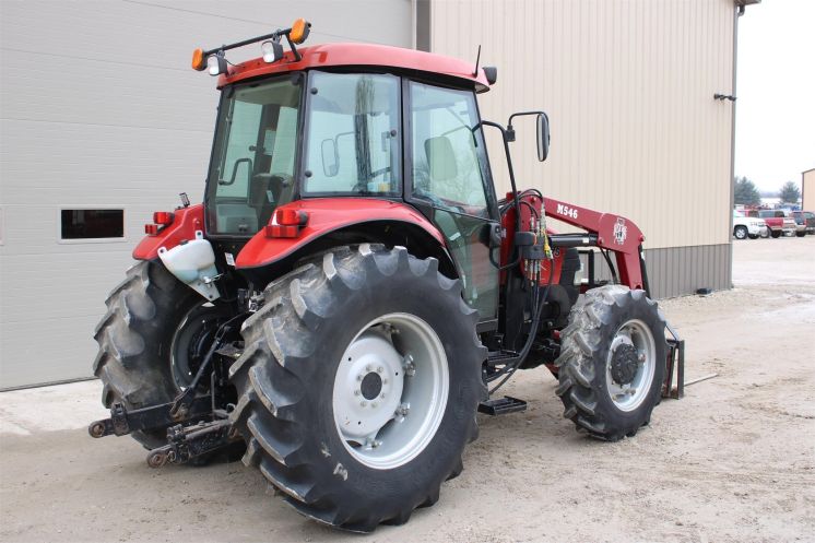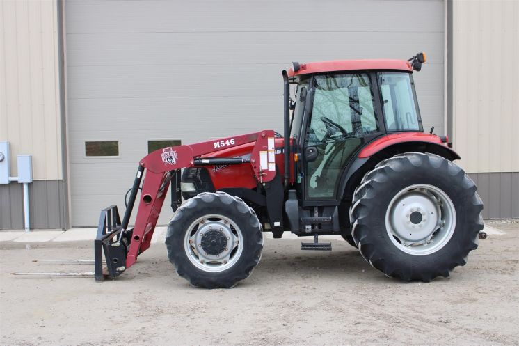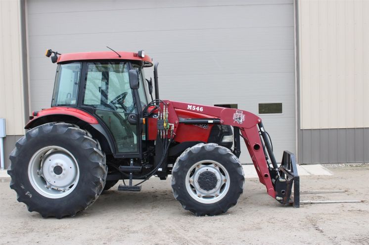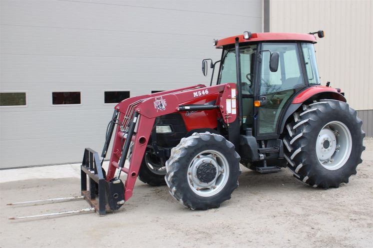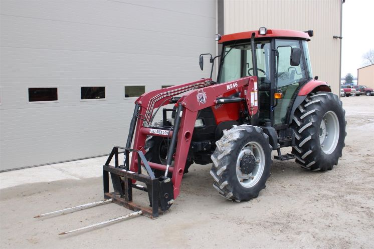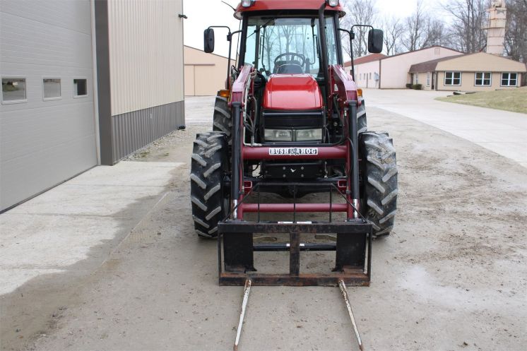 Specifications: 2004 Case IH JX95 Tractor Drive: 4 WD HP: 93 Hours: 920 2004 Case IH JX95 MFWD. 920 Hours! 12/12 Trans With Shuttle. 2 Remotes. 540 PTO. Diff Lock. Double Door Cab. Bush Hog M546 Loader With S.S. Attach Bale Spear Only. 12.4R24 Front Tires @ 50%. 18.4R30 Rear Tires @ 80%. Good Running And Operating Tractor.