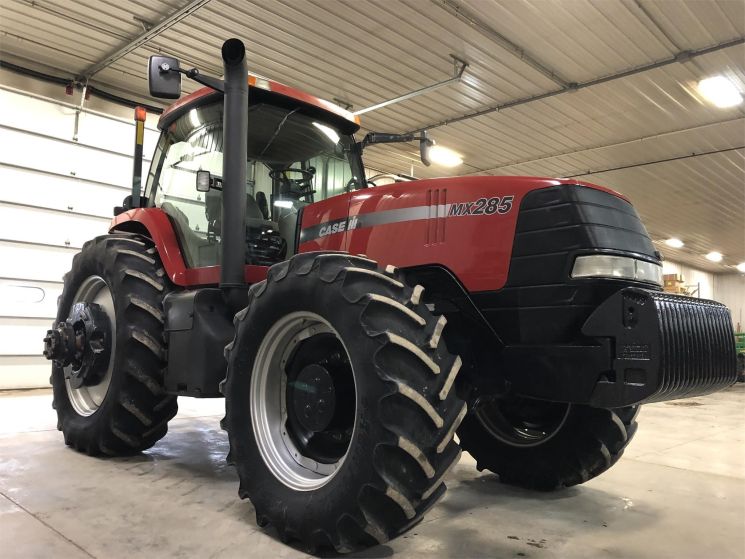 Specifications: - 2005 Case IH MX285 Tractor - Drive: MFWD - HP: 287 - Hours: 3554 - MFWD - Diesel - Quick Hitch - 3 Point Hitch - Dif. Lock - Large 1000 PTO - 4 Remote Hydraulics - Powershift Transmission - 18 Front Weights - 1 Set Rear Weights - Tires (F) 480/70R34 @ 80% (R) 520/85R46 Duals @ 40% - Cab - Radio - Heat - Air - Buddy Seat