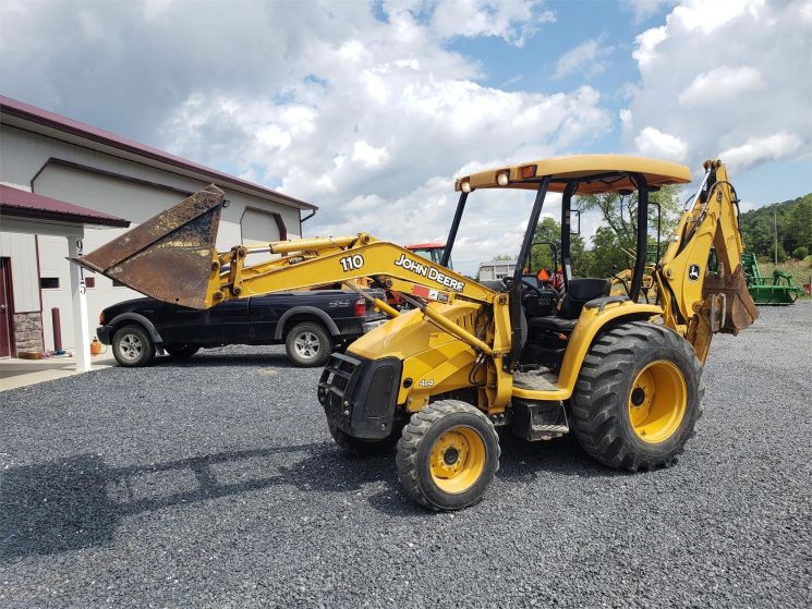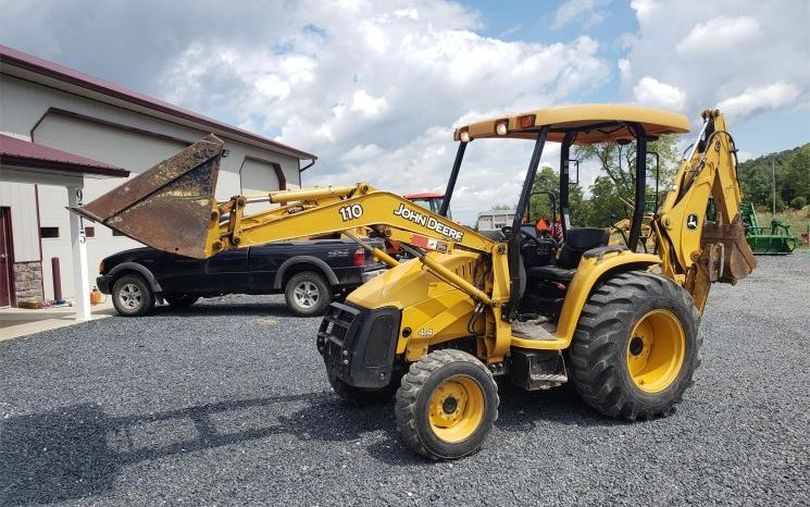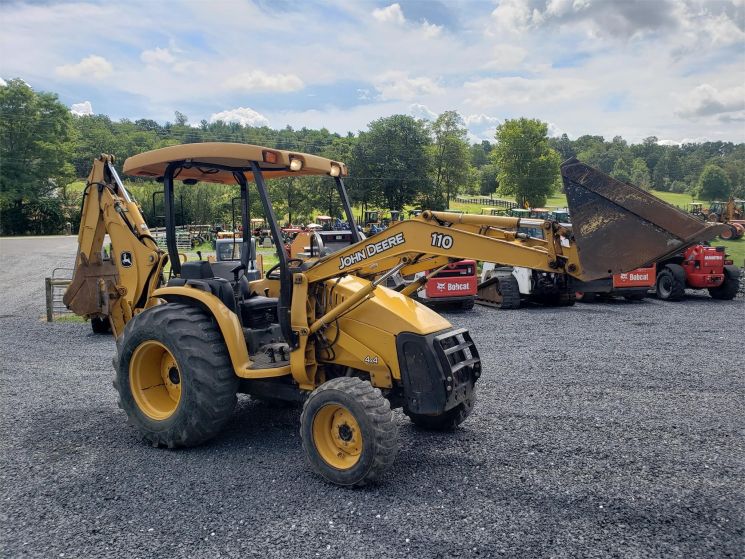 Specifications: - 2006 John Deere 110 - Nice tight machine with 1,000 hours reported. Sharp original paint - 4x4 - hydro transmission - front & rear aux. hydraulics - skid steer quick attach front bucket - QT backhoe bucket. 3 point hitch included.