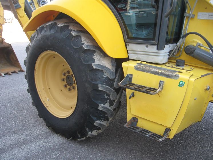 Specifications: 2006 New Holland B95 Backhoe 2,703 Hours 88,6 HP Excellent - Lower Hour Hoe w/ New 16.9 x 28'' Rear Tires , 14 x 17.5'' Fronts , Deluxe 2 Door Cab w/ Heat , AC & Radio , Extend -A- Hoe w/ 24'' Backhoe Bucket & 2 Position Pilot Controls , 88'' Front Bucket , Very Nice Unit w/ Original Paint.