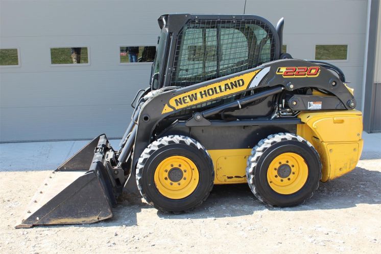Specifications: 2011 New Holland L220 Skid Steer Hours: 2436 Enclosed Cab With A/C, Heat And Radio. 2 Speed Trans. Foot Controls. Auxiliary Hydraulics. Power Quick Tatch. Heated Seat. Air Suspension Seat. New 10-16.5 Tires All Around. Counter Weight Package.