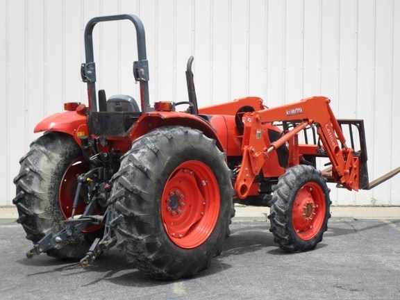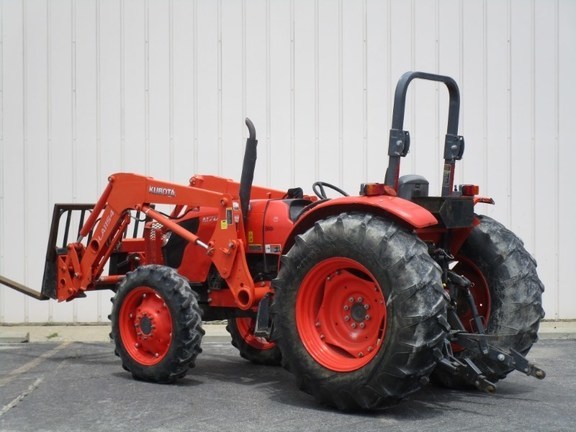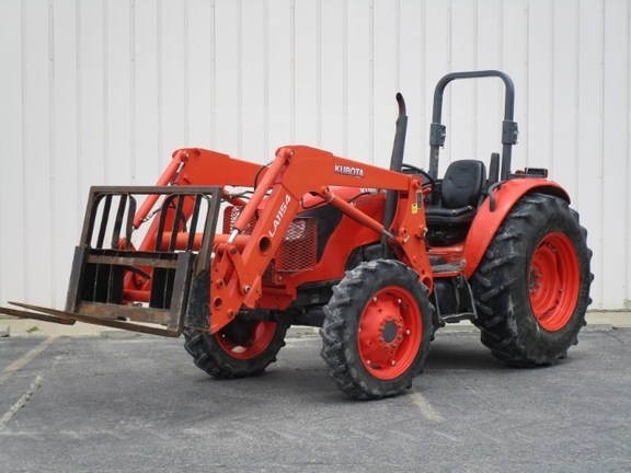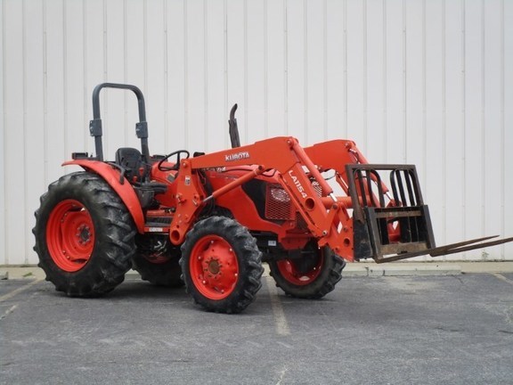 Specifications: 2013 Kubota M7060 Tractor Drive: MFWD HP: 71 Hours: 926 Configuration: Standard Cab: No Cab Transmission: Syncro Guidance-ready: No Front Axle: MFWD Rear PTO: 540 Loader: Yes LA1154 Loader with Pallet Forks Dual Rear Hydraulic SCV Outlets 12F/12R Shuttle Shift Transmission 2 Post ROPS 540 Rear PTO 3 Point Hitch 16.9-30 Rear Tires (20%) 9.5-24 Front Tires (20%) Loader with Pallet Forks Only | Dual Rear SCV's | MFWD