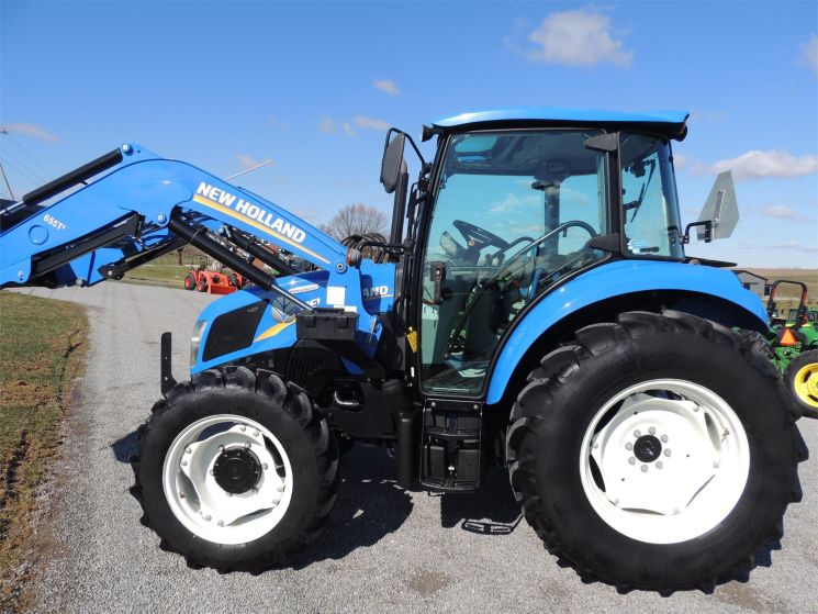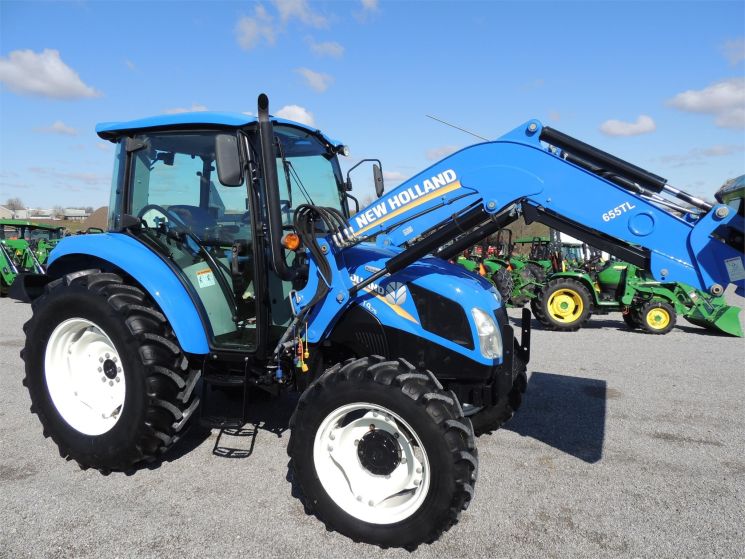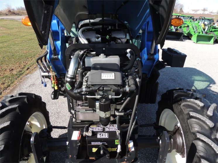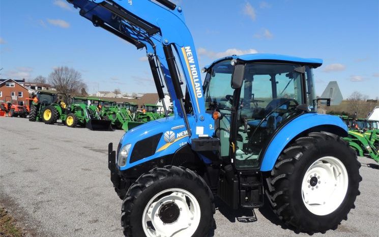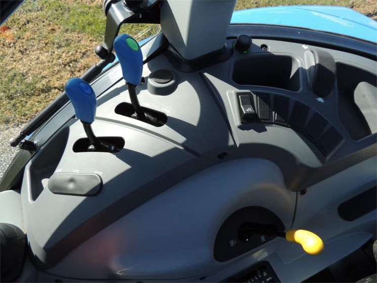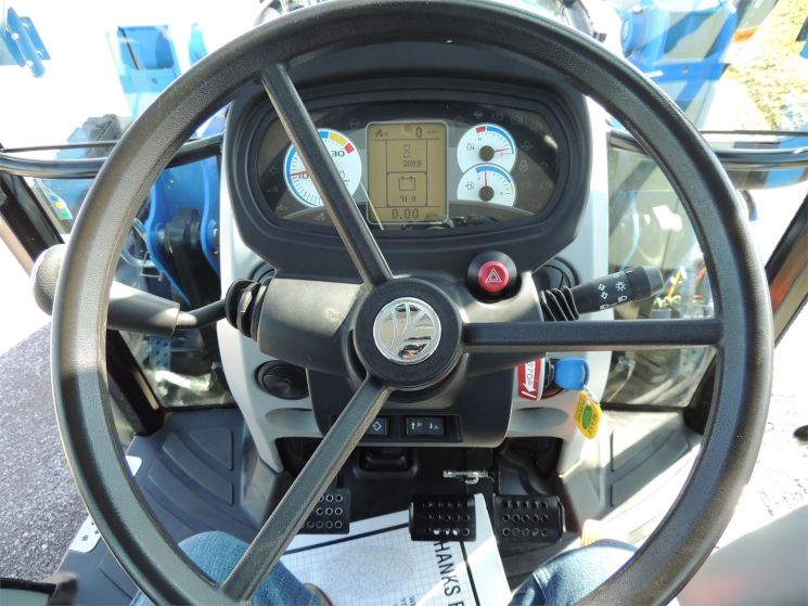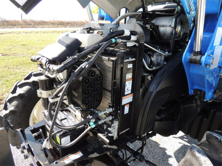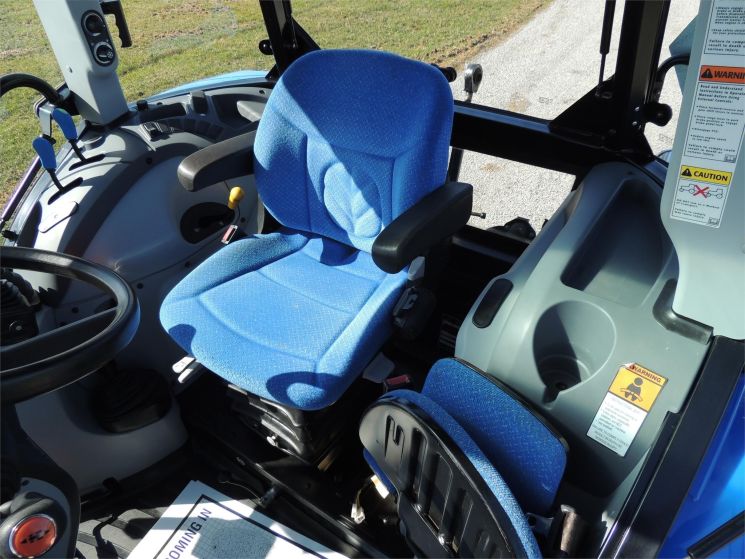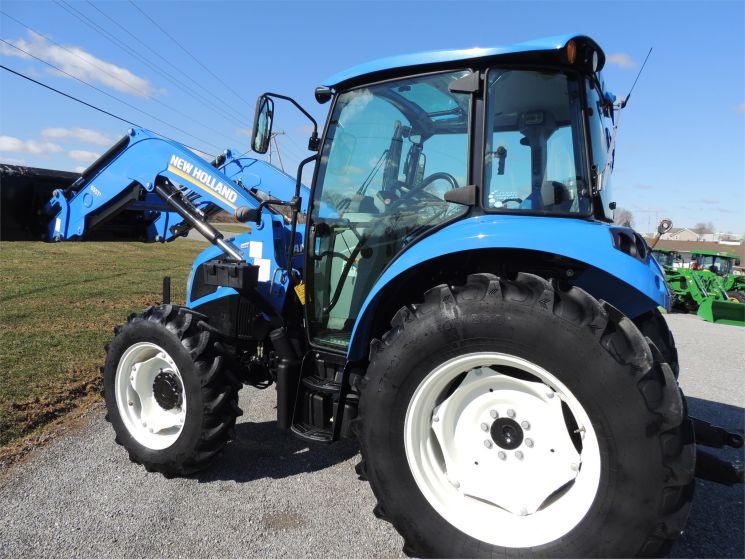 Specifications: 2014 New Holland T4.75 Tractor Drive: MFWD HP: 74 Hours: 220 Excellent Low Hour Tractor with Cab & Loader, Power Shuttle, 2 Rear Hyds, Radial Tires, Sun Roof in Cab, New Holland T4.75 Powerstar -4x4 -Cab, Heat, AC -220 Hours -74 Engine Hp -65 PTO Hp -4 Cylinder Diesel w/Turbo -No DEF Required -Engine Pre-Heater -w/NH 655TL Quick Attach Loader -Factory Joystick -Grill Guard -6' Quick Attach Bucket -Skid Steer Carrier -12/12 Synchronized Gear Transmission -Power Reverser -Power Steering -Differential Lock -540 PTO -2 Rear Hyds -Deluxe Telescopic 3 Point Arms -Top Link -Stabilizer Bars -Galaxy Radial Tires -16.9R30 Rear Tires @ 90% -11.2R24 Front Tires @ 90% -Rear Tires are Loaded -2 Exterior Mirrors -2 Entry Doors -Front & Rear Work Lights on Cab -Corner Post Exhaust -Front & Rear Wiper -Visibility Roof in Cab (Tilts Open) -Deluxe Air Ride Seat -Buddy Seat -Tilt Wheel -Hand & Foot Throttle -Radio -Cup Holder -Sun Visor -Excellent Condition!