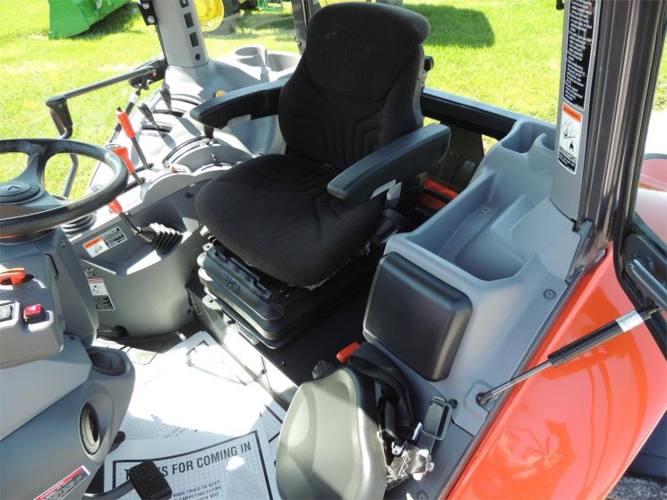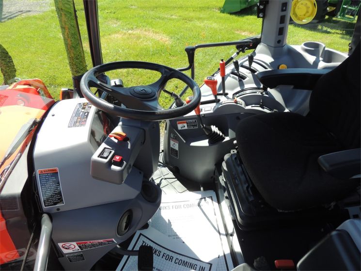 Specifications: - 2015 Kubota M5-091 Tractor - Drive: MFWD - HP: 92 - Hours: 520 - Sharp Low Hour Tractor! Cab & Loader - 12/12 Hyd Shuttle - 2 Hyds - 540/540E Pto - High Visibility Roof - Heat - A/C (Ultra Grand Cab II) -520 Hours -92 Engine Hp -76 Pto Hp -4 Cylinder Kubota Diesel Engine w/Turbo -Engine Glow Plugs -w/Kubota LA1854 Quick Attach Loader -Factory Joystick in Cab -6' Quick Attach Bucket -Skidsteer Style Carrier -Grill Guard -12/12 Synchronized Gear Transmission -Power Reverser -Power Steering -Differential Lock -540/540E Pto -2 Rear Hyds -Deluxe Telescopic 3 Point Arms -Top Link -Stabilizer Bars -Cast Rear Centers -18.4R30 Rear Tires @ 80% -12.4R24 Front Tires @ 60% -Rear Tires are Loaded -Toolbox -Front & Rear Work Lights on Cab -2 Exterior Mirrors -Suspension Seat -Buddy Seat -Tilt Wheel -Hand & Foot Throttle -Cup Holder -Sun Visor -Radio -Visibility Glass in Cab Roof -Excellent Condition!
