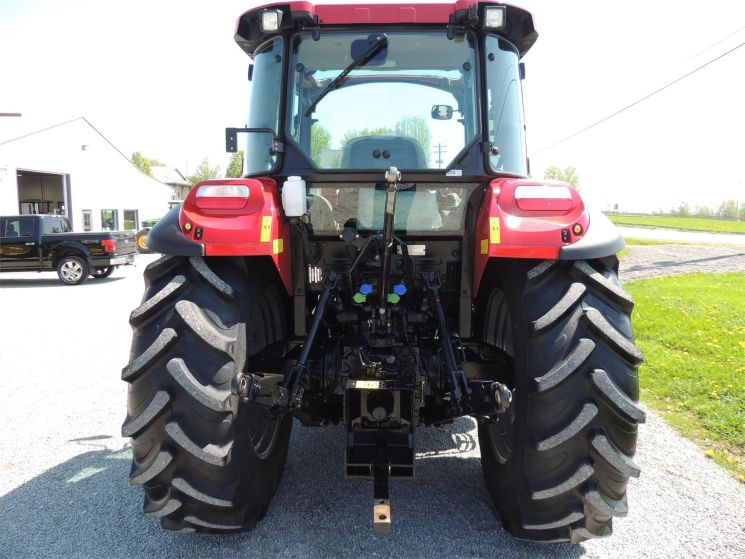Specifications: 2018 Case IH Farmall 120C Tractor Drive: MFWD HP: 117 Hours: 270 Excellent Tractor that is LOADED with OPTIONS!! 24/24 Power Shuttle, Plumbed for Grapple, Weights, Made in Italy, Deluxe Cab, SL Loader, SHARP!! Case IH Farmall 120C -4x4 -Deluxe Cab, Heat, A/C -270 Hours -117 Engine Hp -99 Pto Hp -4 Cylinder Diesel Engine w/Turbo -Engine Speed Management -Engine Pre-Heater -w/Case IH L630 Quick Attach Loader -Loader is Self Leveling -Loader is Plumbed to Operate Grapple Etc. -Factory Joystick, Plumbed for 3rd Function -Grill Guard -7' Quick Attach Bucket -Skid Steer Style Carrier -24/24 Synchronized Gear Transmission w/2 Speed Power Shift -Power Reverser (Deluxe Controller) -Shuttle Reactivity Switch (easily set the reverser sensitivity) -Hand Park Brake (no park gear) -Power Steering -Differential Lock -540/1000 Pto Capable (both shafts are included) -2 Rear Hyds -Deluxe Electronic 3 Point Control in Cab -External Buttons on Both Fenders to Control 3 Point & Pto -Deluxe Telescopic 3 Point Arms -Top Link -Stabilizer Bars -Galaxy Radial Tires -18.4R34 Rear Tires @ 90% -14.9R24 Front Tires @ 90% -Tires are not Loaded -2 Set of Rear Wheel Weights -Rear Fender Extensions -2 Exterior Mirrors -2 Entry Doors -Corner Post Exhaust -Front & Rear Work Lights on Cab -Front & Rear Wiper -Visibility Roof in Cab (Tilts Open) -Deluxe Air Ride Seat w/Swivel -Buddy Seat -Tilt & Telescopic Wheel -Hand & Foot Throttle -Radio w/Bluetooth Capabilities -Cup Holder -Sun Visor -Rear-view Mirror -Excellent Condition!