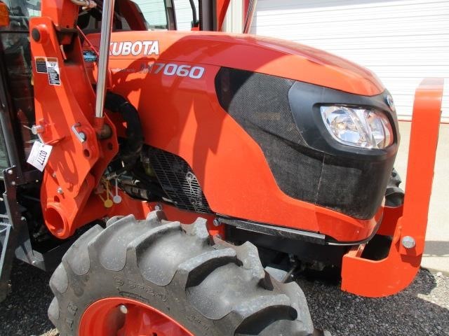 Specifications: 2018 Kubota M7060 Tractor Cab Drive: 4 WD HP: 70 Hours: 305 2018 KUBOTA M7060.CAB/AIR/HEAT/RADIO. 70 HORSEPOWER DIESEL. HYDRAULIC SHUTTLE-8 SPEED TRANSMISSION. 4X4. POWER STEERING. QUICK ATTACH KUBOTA LA1154 LOADER/JOYSTICK CONTROL/SKID STEER STYLE QUICK ATTACH BUCKET. 3 POINT AND PTO HOOKUPS. DUAL REMOTES. 305 HOURS. VERY CLEAN/RUNS GREAT!
